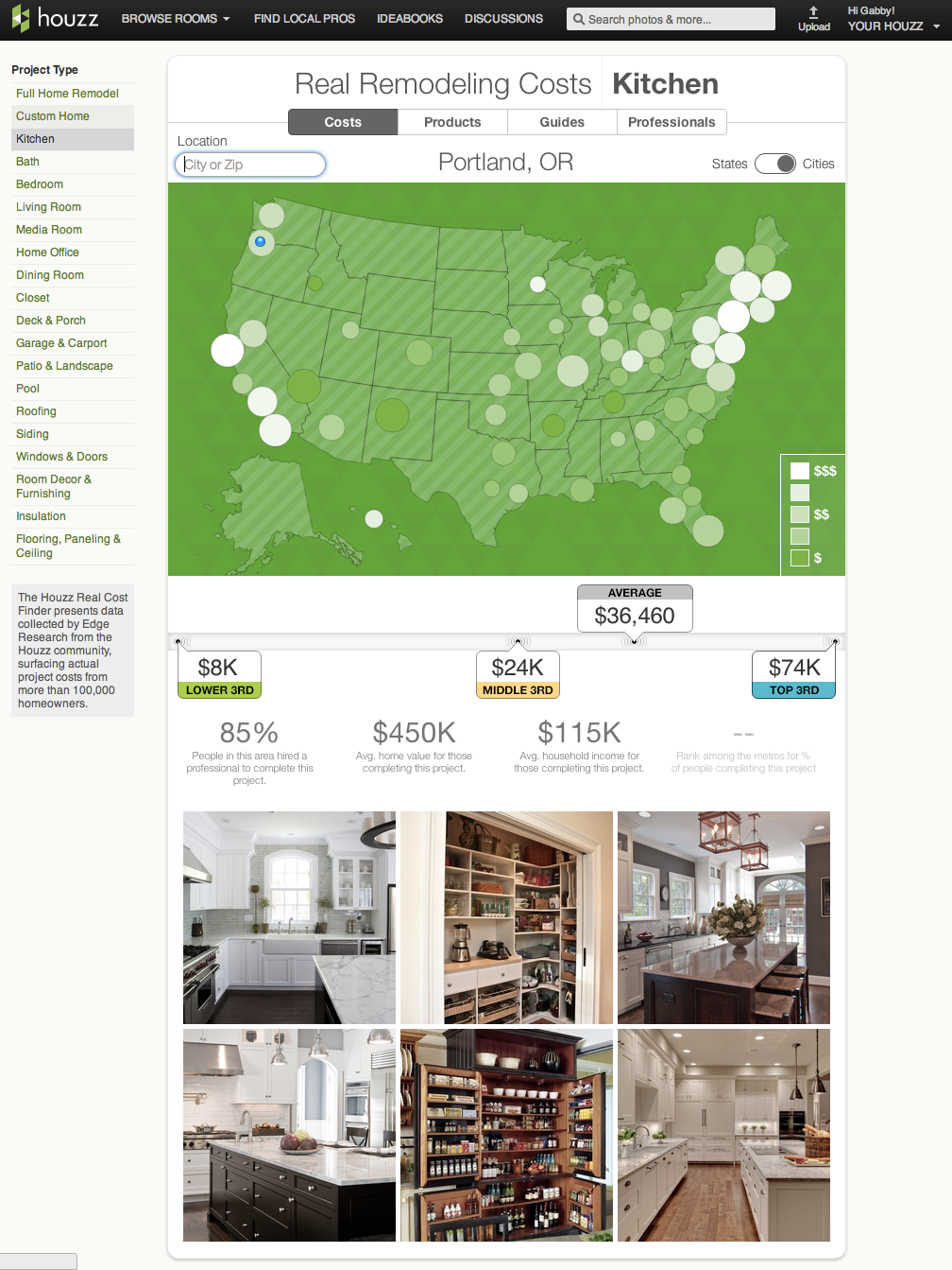 If you need a bout of house envy, there’s no better place to go than Houzz, the increasingly popular platform for finding ideas for your home remodeling projects and the professional that can realize them. Today, however, the service is adding a bit of a reality check to these dreams. The company, which currently sees 14 million users every month, recently surveyed 100,000 homeowners in the U.S. about their projects. It’s now surfacing this information on its site and in its mobile apps to give homeowners a better idea of what remodeling projects in their local areas typically cost.
