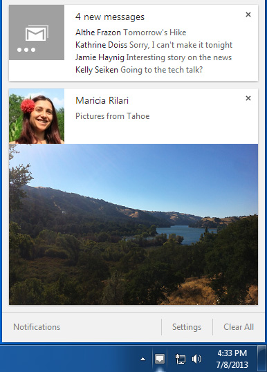 Google teased the advent of rich Chrome notifications that would live in a discrete notification center outside of the browser back in May, but the company didn’t offer any inklings about when we non-beta users could start using them. Well, the wait is officially over… for some of us, anyway. According to a post on the official Google Chrome blog, notification support will go live for Windows Chrome users as soon as they install today’s update.