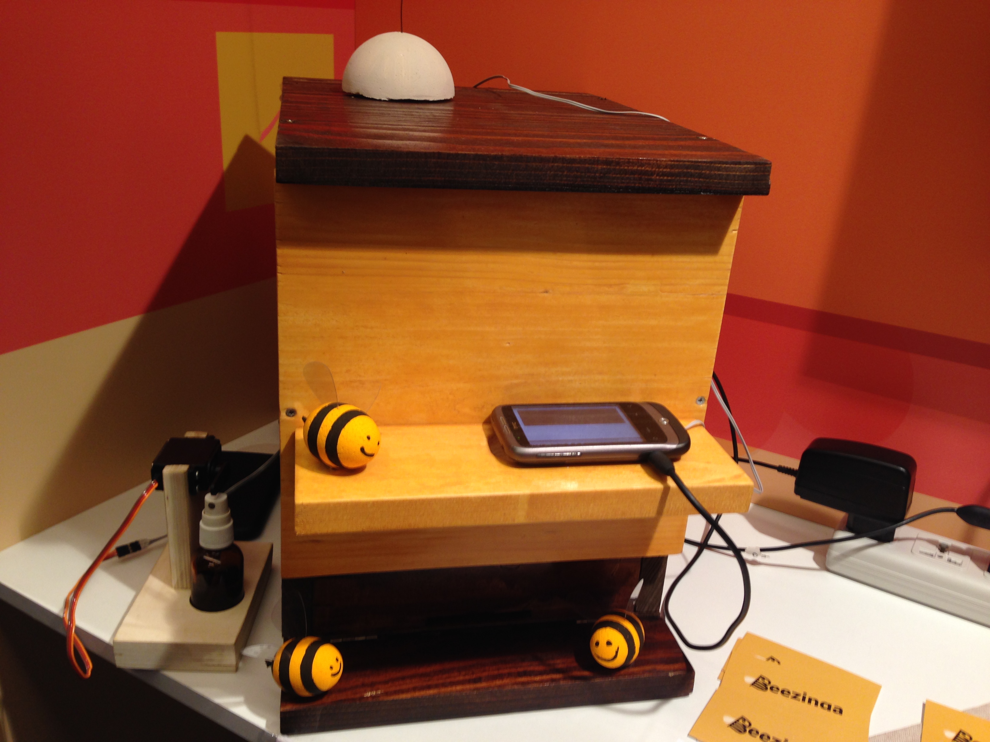 The system regularly updates data from the hive to the cloud and beekeepers can then use a web app to get a quick overview of how their bees are doing. The system, of course, can also send real-time alerts when something is amiss. Right now, Beezinga uses a standard cell phone with a data connection to send this data from the often remote apiaries (and multiple hives can talk to the same phone), but the team is also looking into how to use off-the-shelf technologies to integrate wireless technologies directly into the system without the need for a phone.