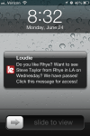 Then, based on how many points you have, your location, and your interests, Loudie will send you push notifications with offers for free tickets for the first people who redeem. Sometimes the offer is for five tickets, sometimes for 10, or 20.