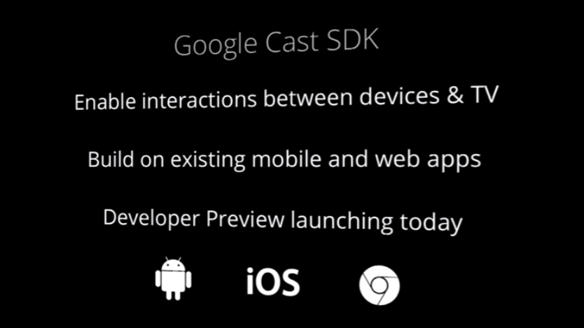 Google launched its $35 Chromecast device today that allows users to stream their Chrome tabs and videos to their TVs from virtually every popular platform. In addition, Google is also launching the Google Cast SDK for developers on iOS, Android and Chrome, which will allow them to enable their apps to stream right to their users TVs. The new SDK, which is officially in beta (or “preview,” as Google calls it), will be available later today.