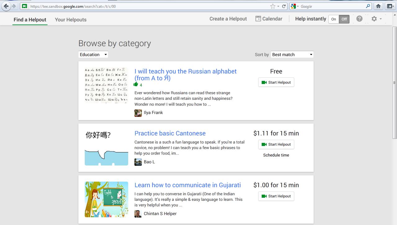 Of course, as with any Google product launch, life could be getting a little bit tougher for its smaller (and startup-y) competitors. There is a long list of businesses that either parallel or would directly compete with some part of Helpouts, whether it be LiveNinja, PowHow (which is, believe it or not, founded by a former Googler), Live Moka, InstaEdu, Shmoop and, perhaps less directly, platforms like Angie’s List, Udemy, Skillshare, TaskRabbit, CreativeLive and Curious. Though, admittedly, some of these overlap more than others.