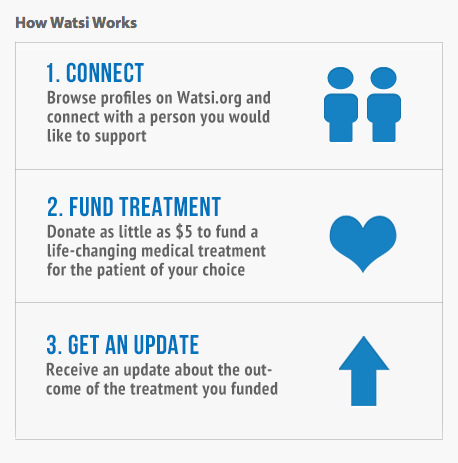 , Watsi hosts profiles of people in dire need of medical care, but who can’t afford it. Donors can browse the profiles and donate as little as $5 to help someone get well. 100% of donations go to the sick, and Watsi funds its operations and even pays credit card processing fees on donations out of its own pocket. We name