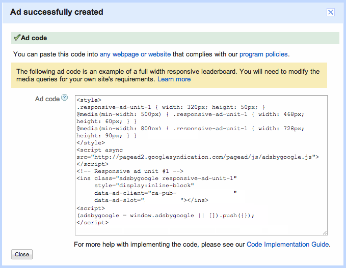 The only thing developers need to ensure is that the size of the ad unit they specify for each screen size matches one of Google’s standard ad sizes. So unlike Google’s standard ad units, you can’t just take the code, copy and paste it into your site and know that it’ll work.