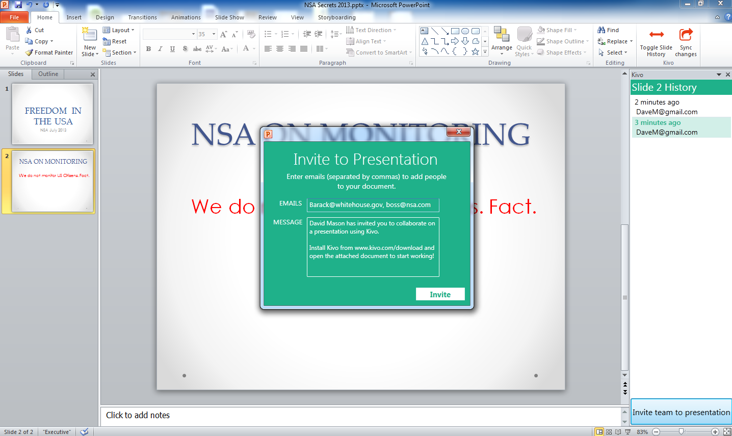 Co-founders Zefi Hennessy Holland (CEO) and Leo Anthias (CTO) argue that most people still work on a draft-based system and send their Office documents back and forth over email. Kivo lets its users sync changes in their documents. The idea is to expand this to a wide range of often-used formats, including all of the standard applications in the Microsoft Office suite. For now, however, it only works for PowerPoint 2007 and 2010 on Windows XP and up (support for the latest version of PowerPoint is coming soon).
