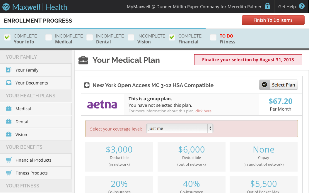Maxwell Health puts a heavy focus on independent health by offering incentives for employees to eat healthy diets and exercise regularly. Each employee uses a fitness device and receives points for activity, which can be traded in for rewards.