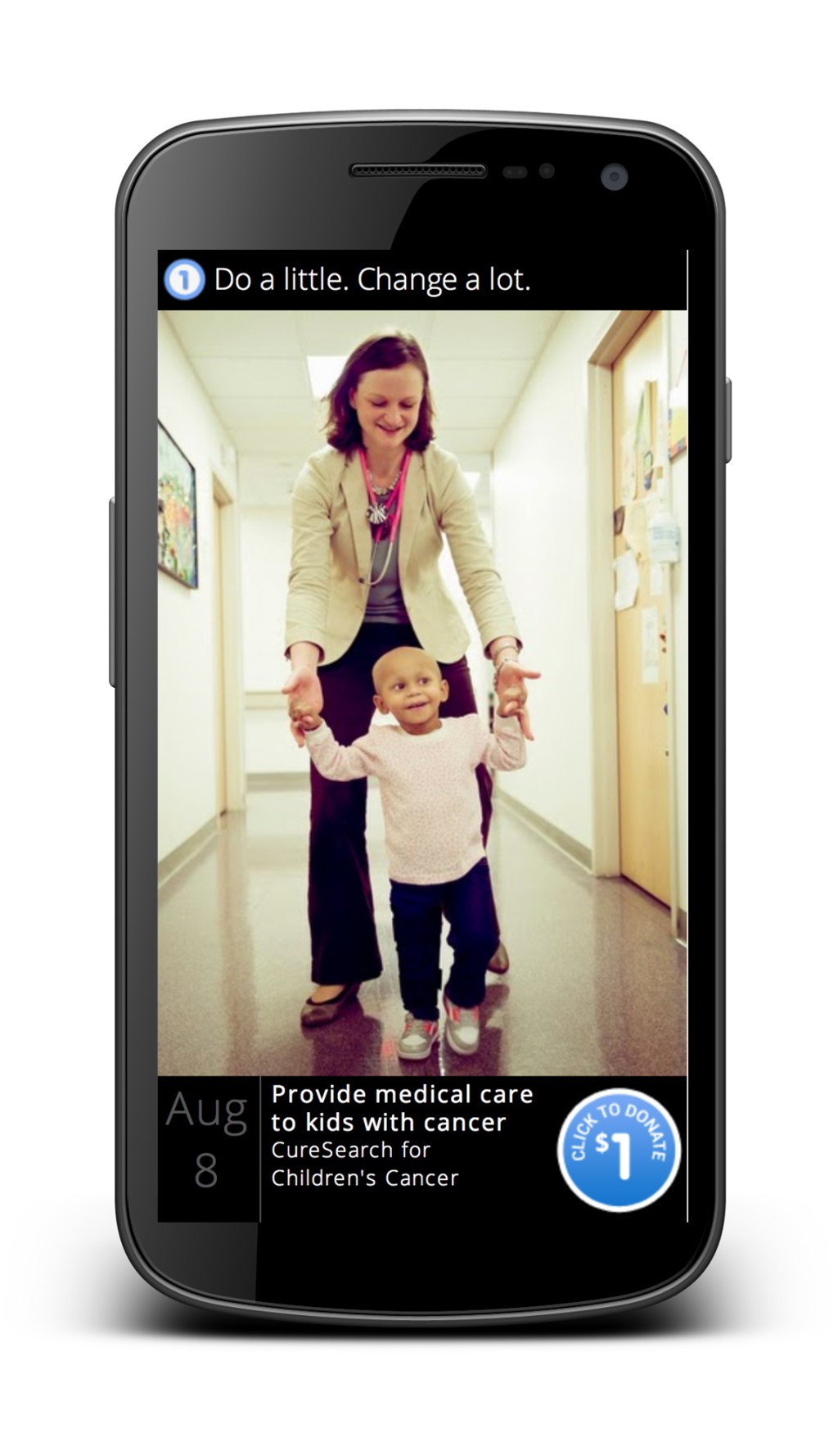 Longer-term, it’s probably optimistic to think that a majority of people would get into a habit around the daily giving of a dollar a day, but that’s the marketing technique popularized by Sally Struthers and the Christian Children’s Fund (“for the price of just a cup of coffee a day, you can save a life.”). Of course, the charity she spoke for didn’t get users to commit only a dollar, it broke down the annual donation into what sounded like a manageable amount for the purpose of a soundbite.