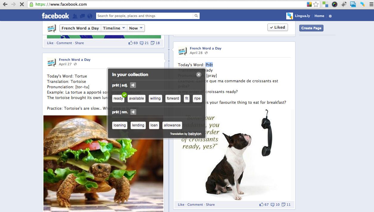 Lingua.ly, then, finds the online content that’s right for your learning needs and even takes your personal interest into account (say you want to read about sports, business, travel, politics or celebrity gossip). With this service, even your Facebook feed could become a language-learning opportunity.