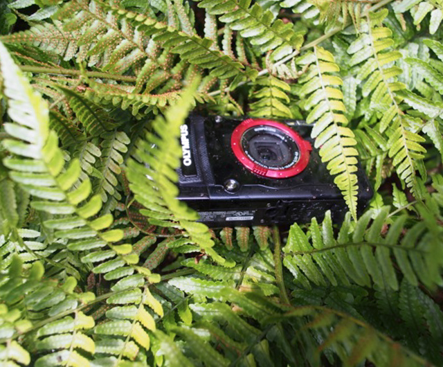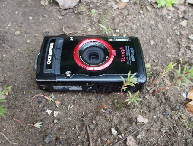 The Olympus TG-2 is a simple, compact point and shoot that is clad in a hard plastic case. Locks on the bay doors make it waterproof to 50 feet and it can withstand drops on hard surfaces from 7 feet. The aforementioned toddlers – four in all – took the camera through the back yard at a garden party, dunked it a few times, and threw it around with nary a scratch. The worst I could manage was a ding on the side when it fell on concrete. In short, this camera is surprisingly resilient.