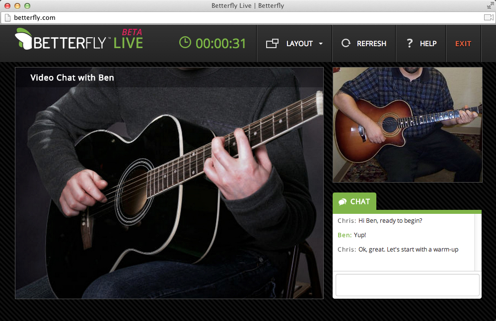 Chicago-based self-improvement startup Betterfly has been connecting teachers and students in real life for music lessons, relationship coaching, juggling instruction and just about anything you can imagine. But the startup is finally bringing its model online thanks to a live video platform launch today. Betterfly LIVE connects students and teachers for real-time video chat, with a platform built specifically for coaching and teaching.