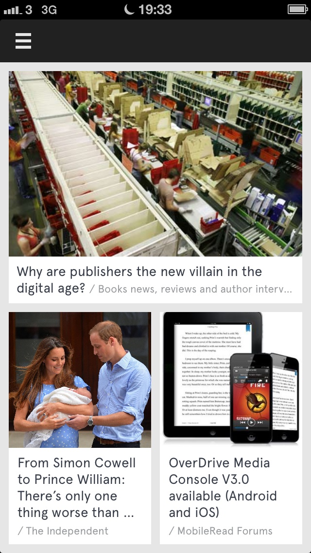 How does Material differ to the social magazine competition of Flipboard, Zite, Pulse et al? Not hugely, really, although Johnstone claims it offers a lower barrier to entry/set-up than rivals, being as it can be powered just by signing in with your Twitter (or Facebook) account. There are also no human curated sections in Material. Content is pulled in solely by looking at activity on your social networks and matching that to stories from across the web — therefore his argument is that the content it finds will be entirely unique to you.