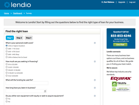 Like Zenefits is doing for startup health insurance and benefits, Lendio is essentially attempting to become a next-gen broker, streamlining and automating the process by cutting the middle men out of the process and connecting lenders directly to those in need of capital. To do so, the startup asks business owners to answer four questions that help them build a profile on the business and get a sense of what type of loan would best suit their needs.