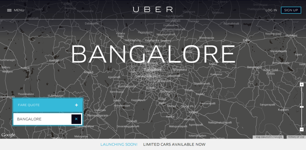 So far this year, the private transportation startup has been on a tear in Asia and it last night discreetly announced that Bangalore would be the latest cab off the rank. The strategy is being fuelled in part by a $258 million investment led by Google Ventures, which values the company at $3.5 billion. In India, the initial strategy appears to be an extension of what occurred in Singapore, Seoul and Taipei, where the service was positioned as a luxury option better than the status quo. The Bangalore launch comes amid a trio of debuts in three consecutive days, with Dubai and Cape Town preceding the India debut.