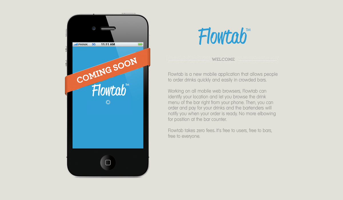 Townsend took his iPad mockup and a short demo to 12 bars in the Santa Monica area, pitching a product that was utterly unbuilt. Response, Hill and Townsend recount, was good enough to keep moving on the project. Following the offline testing period, in mid-May of 2011, Flowtab put together a landing page. As Internet companies go, Flowtab had planted its flag. Two months later, the first version of Flowtab, coded in HTML5, was complete.