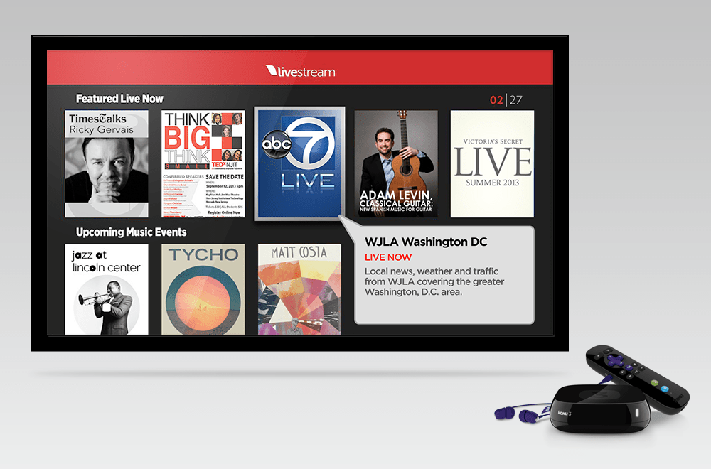 Livestream is introducing a whole new app for Roku streaming devices that will enable viewers to watch its live events and archived on-demand videos from their big-screen TVs. The new app is actually Livestream’s first attempt to bring its live channels and on-demand archives to a connected TV device.