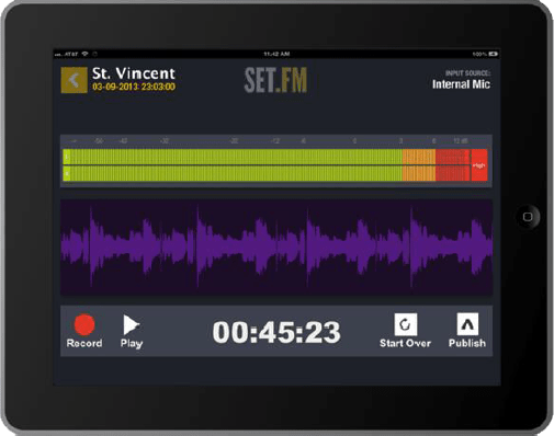 To use Set.fm, musicians pay their own production and venue fees, choose which recording solution to use (iPad, iPhone or desktop) and hit the record button once the show starts. Set.fm software will then stream the music from the soundboard, convert the analog signals into digital signals and encode the performance and metadata all in real time. Uploading and transcoding the show as it is recording allows fans to download the performance seconds after it ends.
