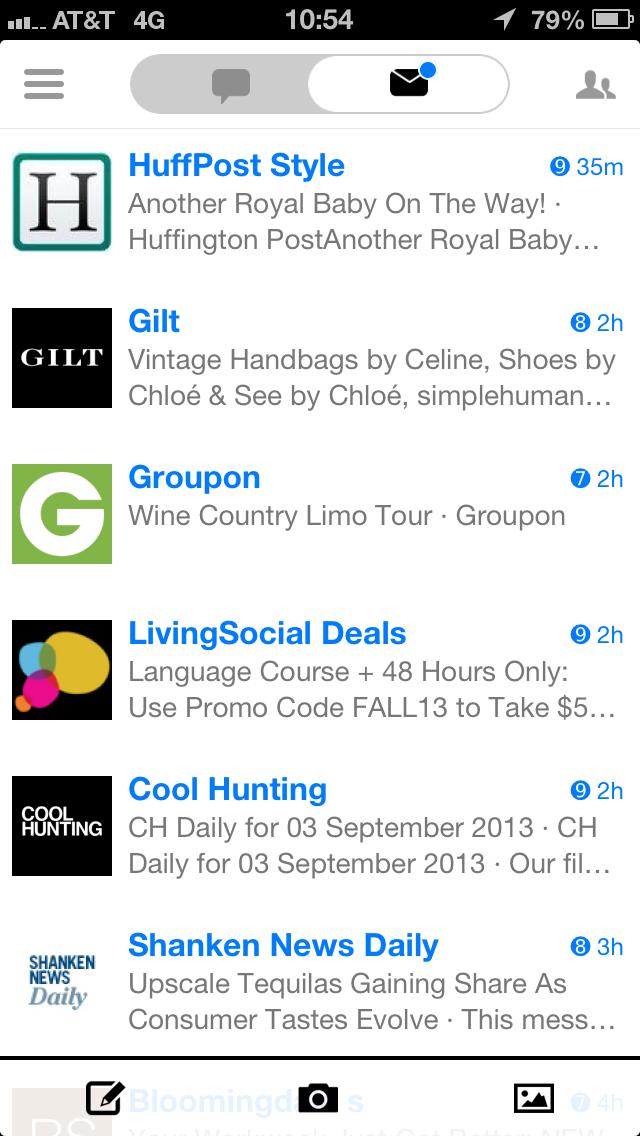 It’s a different approach from popular apps like Mailbox or Boxer (formerly known as Taskbox), which streamline the process of organizing emails into categories. Instead, Ping automatically groups all emails from a contact into one thread, so they are displayed like IMs or text messages. All your emails on daily news, sales and the like are grouped together too on the incoming page, just one swipe over.