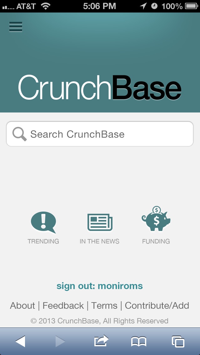 The homepage is mainly a search box for that one hot startup you’re trying to look at, with links for trending companies, news and funding below. The top nav bar reveals a few more options like “newly funded.” When you click on a company, you’ll see a chronological list of all the main info you’d want — general info, people, acquisitions, investments, funding and competitors. If there’s a lot of info in any segment, like a long list of executives, just swipe to scroll through.