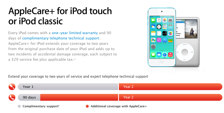 For the first time ever, Apple will also offer AppleCare+ coverage for iPod touch and iPod Classic models. The incident fees for this plan are $29 and the plans themselves run $59.