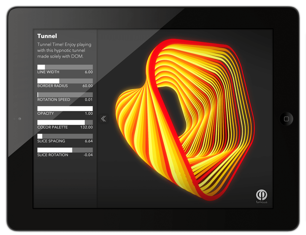 During our chat, Famo.us showed me examples of their framework being used in a way I’d never seen it used for before: super complex 2D web apps running at buttery speeds. Before today, nearly everything I’d seen come out of Famo.us were crazy, theoretical, 3D interfaces — like the oh-so-Minority-Report periodic table demo that sits on their homepage.
