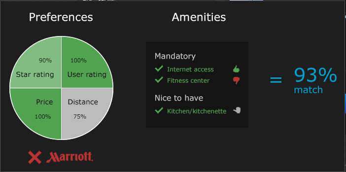 According to Bashvitz, OLSET has processed about 1 million TripAdvisor reviews across 120,000 hotels, with has turned out about 4 million sentiments. The platform then takes these sentiments into account when matching users with potential hotels. For example, if a traveler marks “pool” as a mandatory feature, OLSET will include not only whether the hotel has a pool, but also whether the sentiments were good or bad overall, which will result in a thumbs-up or thumbs-down.