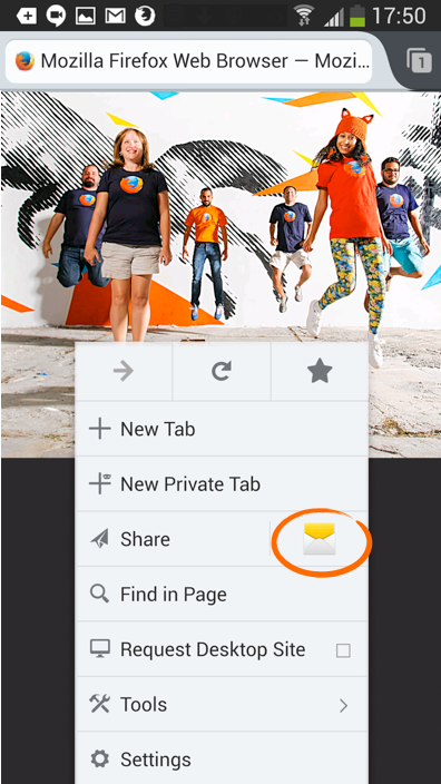 For sharing links, the Firefox for Android team introduces a new “quickshare” feature in the Firefox Share menu. If you regularly share links to Twitter, Facebook or through email or text messages, Firefox now lets you automate this. The browser will now automatically add your most frequent sharing service to the Share menu button, so sending your latest online discovery to your Twitter friends is just a click away.