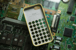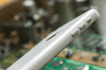 Some interesting details I noticed about the iPhone 5c vs. the 5 and 5s: its lock/power button appears to be the same as the volume buttons, which could help Apple save on manufacturing costs, and there’s a simple, four-hole single speaker grill on the bottom, whereas the metal designs have two grills, each with two rows of holes. It doesn’t seem to make much different to speaker performance, however.