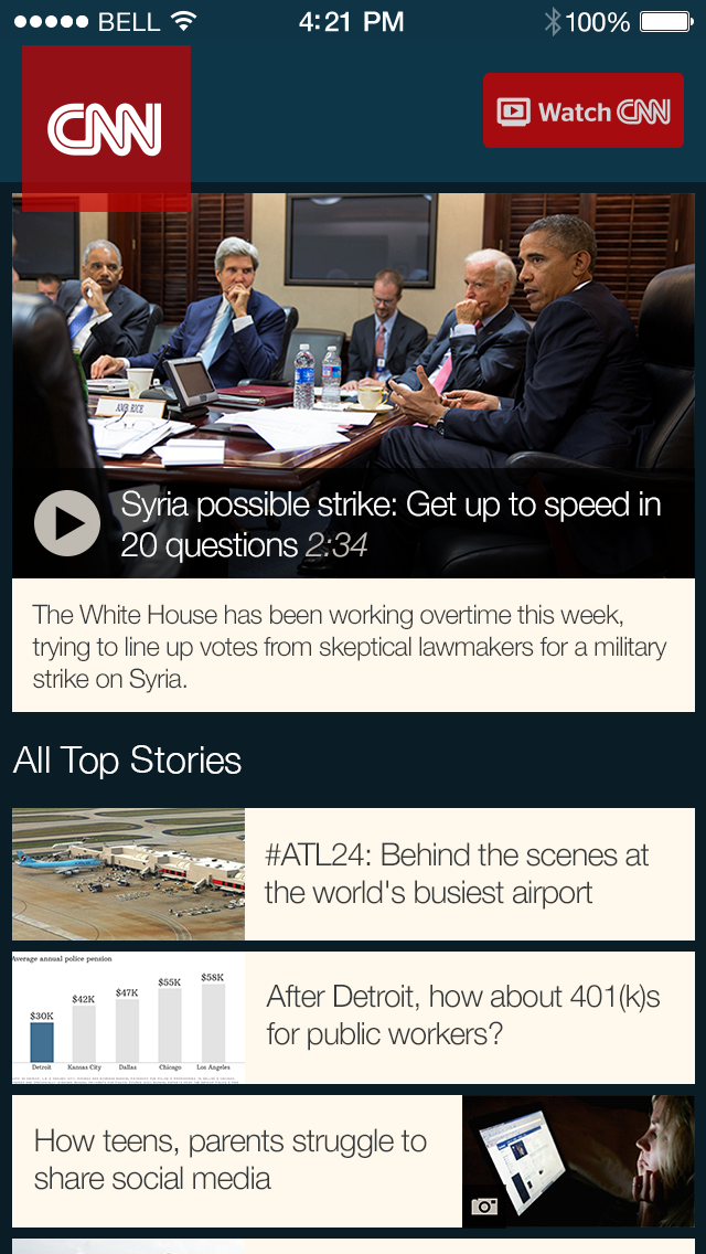 CNN is smack in the middle of a ‘re-platforming’ effort across desktop, mobile and mobile web. And iOS 7’s design cues will inform all of those other platforms as it changes the way that it presents content to its customers.