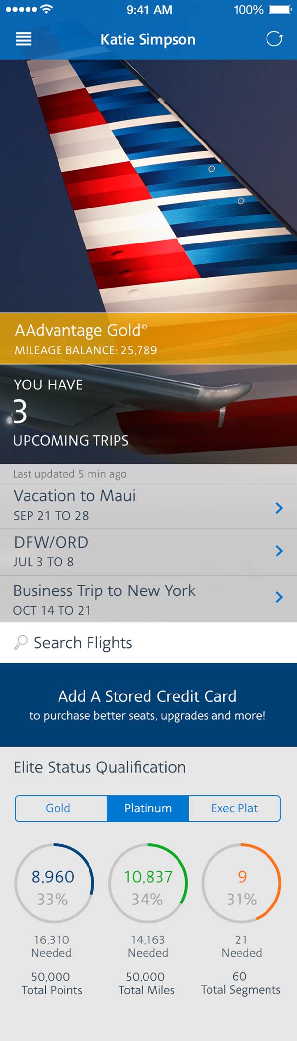 By the time that news of iOS 7 broke, American Airlines had already been pondering a new version 3 of its widely used flight tracking and ticketing app. The most recent shift had seen American adopting its newly minted livery and branding in the app. But iOS 7 presented particular opportunities.