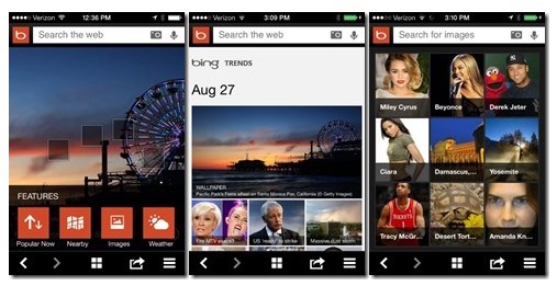 In the updated Bing iOS application, users will now be greeted with four tiles on the main screen of the app. The tiles — Weather, Popular Now, Nearby and Images — are designed to get users information without forcing them to type. Provided that you just want information, and now, they could be good options. They are an obvious mirror of the Bing functionality that is provided by Local Scout in Windows Phone.