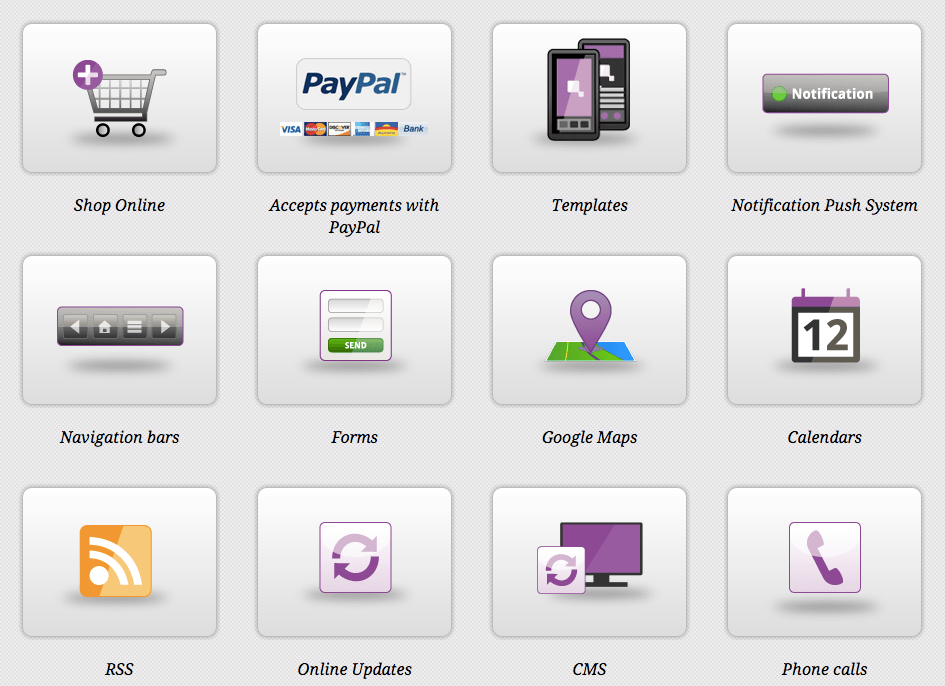 Another flagship feature of Mobincube’s software is the ability for builders to publish their app across multiple platforms, with the software automatically generating the code for the desired platform so it can be submitted to multiple app stores. Supported platforms are iOS, Android, Blackberry and Windows Phone. Mobincube can also be used to create HTML5 Web Apps.