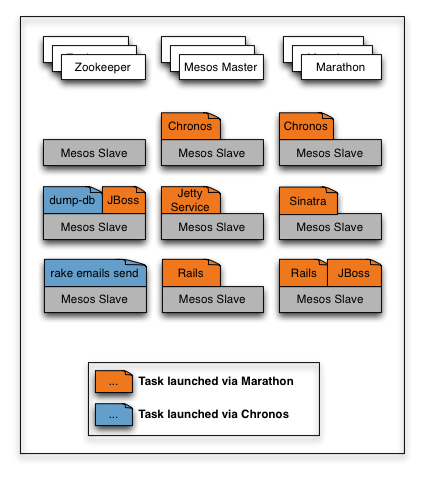 The high-level idea here, as Leibert explained to me, is that Mesos is essentially the kernel of an operating system that looks at the data center as a multi-core CPU. That operating system needs more than just a kernel, though, and all the components around it is what Mesosphere is now focusing on. At AirBnB, Leiber also built the Chronos scheduler, a cron replacement for automatically starting and stopping services (and handling failures) that runs on top of Mesos. The other part of the Mesos puzzle so far is Marathon, which Leibert described to me as the equivalent of init.d – the first process that’s started on a Unix system – for the Mesos ecosystem. Marathon provides the Mesos framework with an API for starting, stopping and scaling services (and Chronos could be one of those services).