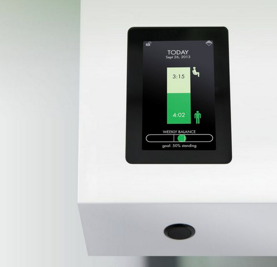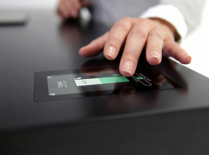 Not only that, but the screen displays graphs and visual representations of a user’s movement, so they can quickly see how long they’ve been sitting and what their work habits and usage looks like. The desk contains a thermal presence sensor and computer outfitted with its health-tracking software, allowing it to track your movement and display that data through its touch screen.