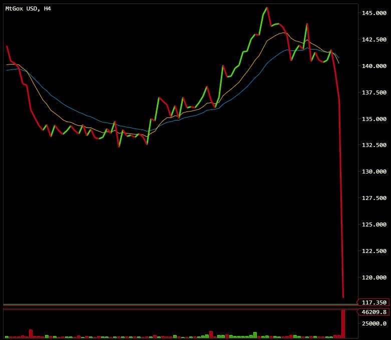 Bitcoin started the day at around the $139 mark. At its current level of $118, Bitcoin has lost around 15% of its value. Keep watching the charts. [Update: Bitcoin is trading around the $113 mark, and continues to decline. To stay up to date, click here.]