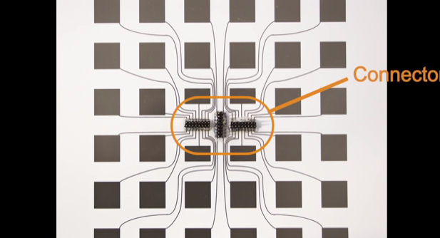 In traditional sensors the connectors are laid out in a grid and when one part of the grid is damaged you lose sensitivity in a wide swathe of other sensors. This system lays the sensors out like a star which means that cut parts of the sensor only effect other parts down the line. For example, you cut the corners off of a square and still get the sensor to work or even cut all the way down to the main, central connector array and, as long as there are still sensors on the surface, it will pick up input.