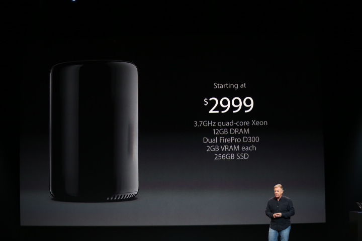 Today Apple announced December availability for the Mac Pro, the strange, solid cylinder of computing power. It starts at $2,999 for the 3.7GHz quad-core Xeon, 12GB DRAM, 2GB VRAM, and 256GB. The new model runs at 44W, 70% less energy consumption than the original Mac Pro.