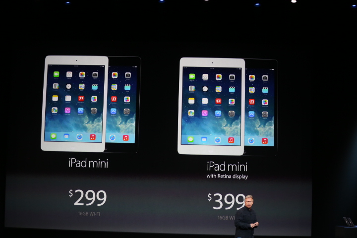 According to Schiller, this new iPad mini will officially hit store shelves some time in November, with price tags that start at $399. Meanwhile, presumably in a bid to bolster the company’s position ahead of the holidays, the original iPad mini will still stick around. Naturally, there’s a price cut to look forward to, as well — the base model first-gen iPad mini will cost $299. Between these revamped minis, the iPad Air, a pair of new iPhones, and some less-expensive, refreshed Mac hardware, Apple is clearly going for blood this holiday season. Now it’s time to wait and see how the rest of the industry responds.