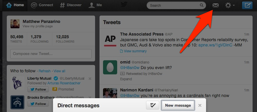Twitter previously buried the DM section under either your profile view or the settings icon at the top of the page.