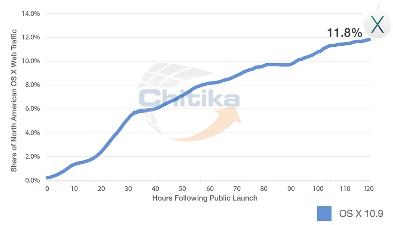 It’s worth noting that Chikita reported Mavericks passing the 10 percent mark sooner than NetMarketShare – data of this sort is somewhat imprecise. However, we can tell, by weighing both data sources, that Mavericks has enjoyed far more rapid adoption than preceding editions of OS X.