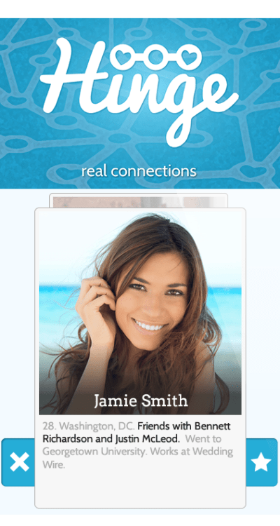 For example, Hinge pulls your Facebook information to present you with people who went to the same kind of college (ivy league, state school), or similar type of job (tech, finance, politics). But it also goes deeper and connects people across these boundaries if it notices female lawyers dig male bankers, or that Harvard guys seem to hit it off with Boston University girls.