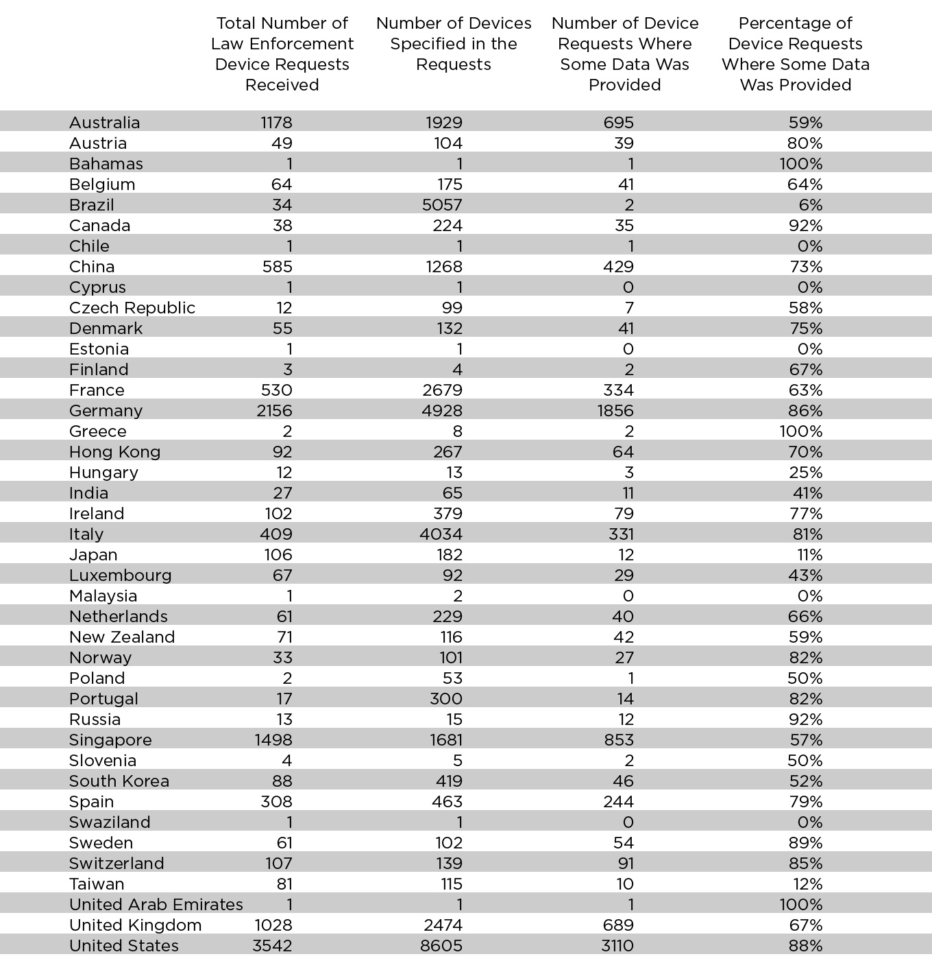 Apple got 12,442 law enforcement requests related to 36,464 devices and provided ‘some’ data on 9,250 of those devices.
