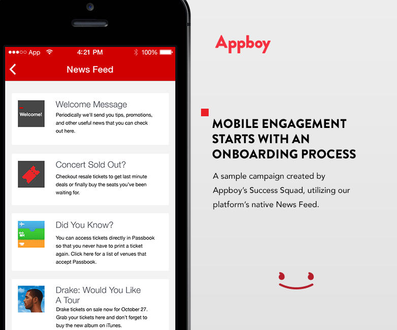 After user profiles are created, Appboy offers multi-messaging marketing tools that let its customers choose how and when specific groups of users are contacted through push notifications, messages within the app, or via emails. The company also provides a “news feed”-like product that developers can place in their apps, too, which allows them to keep users updated on things like new friends or comments, new features, new activity, and other alerts. Though a relatively new product at Appboy, app makers are already seeing 25-30 percent clickthrough rates in the news feed, says Ghermezian.