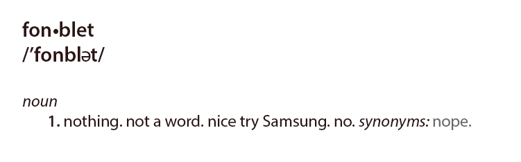 Leaving aside that fonblet hits the ears with all the sonorous pleasure of a cat falling down the side of a skyscraper clad in chalkboard, it also combines the word “tablet” with the word “fone,” which as most will be aware, doesn’t actually exist. Maybe the “f” stands for pen.