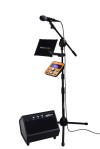 It comes with a mic, a stand, a 40-watt 2.1 sound system complete with subwoofer, and a shelf to hold your phone or iPad. Users can also download the Singtrix Karaoke app (for iOS, Android and Kindle and powered by Karaoke Anywhere) to play over 13,000 songs with lyrics included. This requires a monthly subscription, but users can also purchase individual tracks.