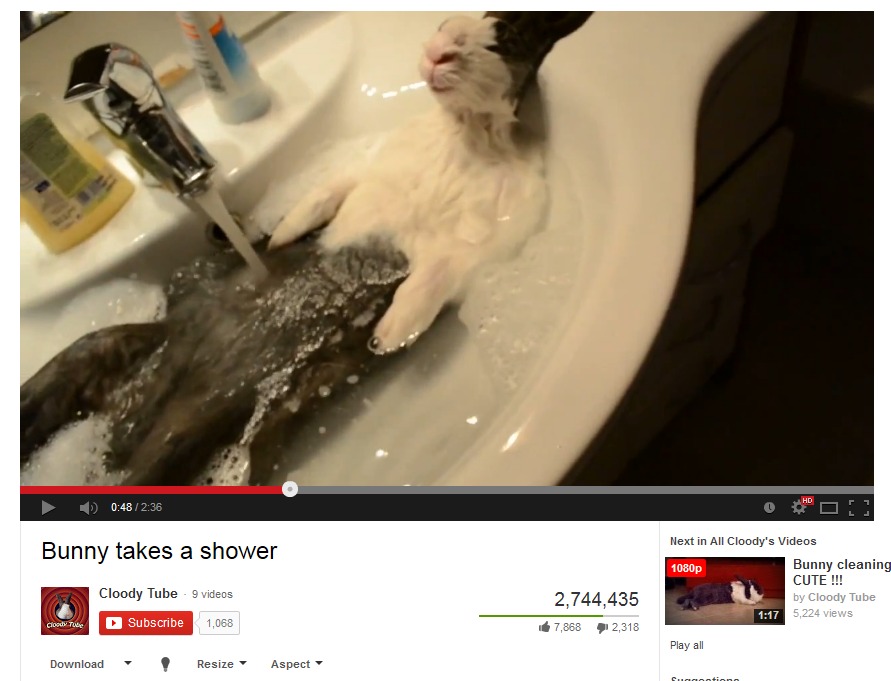 Ah, yes. That was a quality YouTube video. I’ve never felt the need to comment before, but this bathing rabbit deserves my approbation like none other!