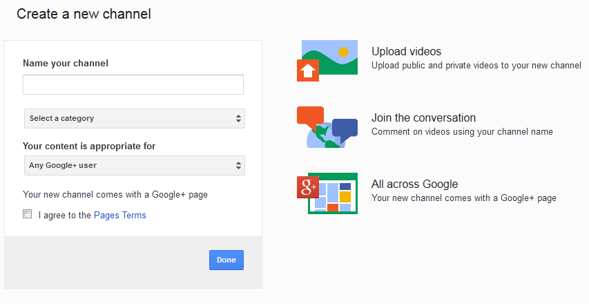 Ah, now you tell me. This new channel “comes with a Google+ page.” Why do I need another one? I already have one, and it’s because I didn’t want to use it that I clicked this button in the first place! Okay, well, I guess it can’t be helped. I can always delete it later.
