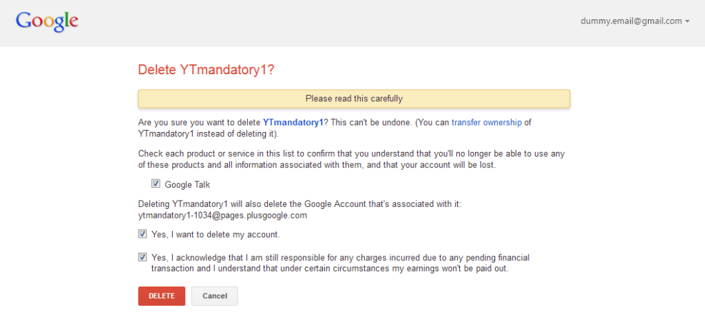 What, I can’t delete it? I have to delete the YouTube channel first? Why would I do that? Why wasn’t this mentioned before? I don’t want some random accounts I don’t use or care about! Wouldn’t it have been more accurate to say I was making a Google+ page that “comes with” the ability to comment on YouTube? But the YouTube channel has its own inbox and notification settings and stuff. I don’t need both, do I?