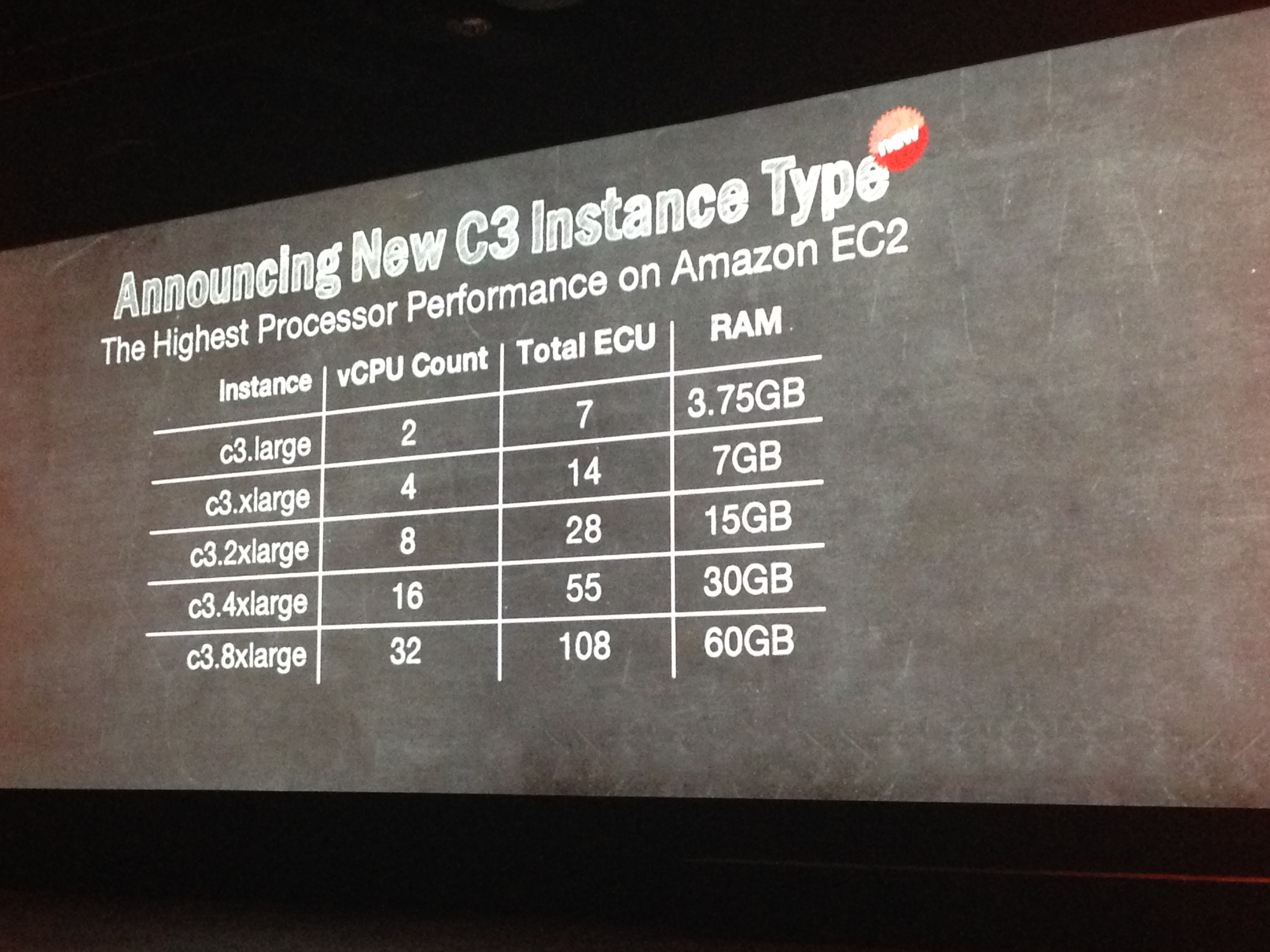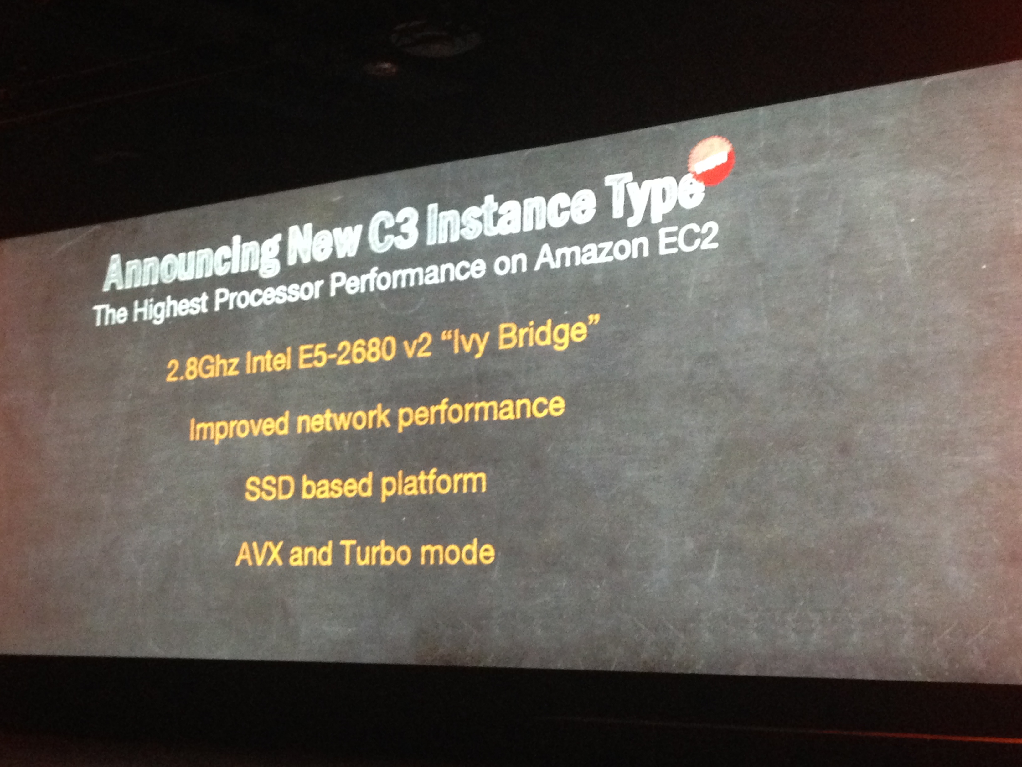 Amazon today announced its fastest EC2 instance type yet. The improved C3 instance type, Amazon CTO Werner Vogels noted in the announcement at the company’s re:Invent developer conference today, represents the highest process performance on EC2 yet. The C3 instances join the new storage- and I/O-optimized I2 instances the company also announced today.