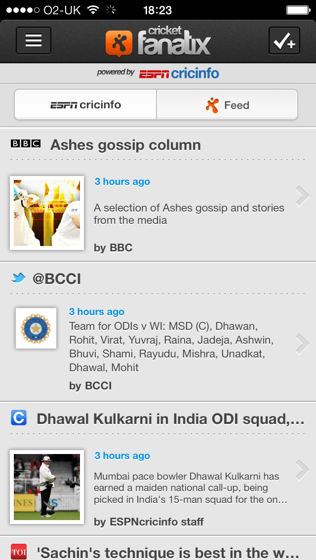Powered by ESPNcricinfo, the new “fanatix Cricket” iOS/Android app pulls in news, scores, blog posts, images, video and other social media content from ESPN’s cricket brand, which claims to be the leading cricket destination online, even besting the BBC’s own cricket offering.