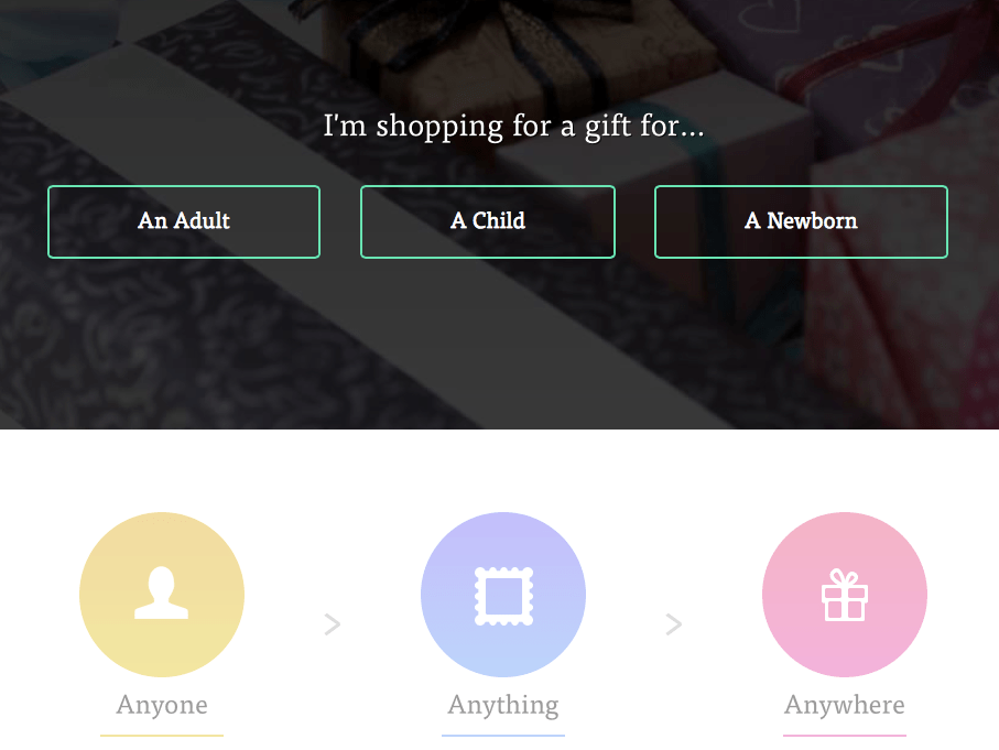 “On your question around storing data, we absolutely allow people to bypass Facebook. Whether you are nervous around using Facebook Connect or simply that the person you are buying for may not be connected to you (i.e. your Grandmother), then you can just use the dynamic hints filters (i.e. style / interests) to allow our technology to still recommend a relevant selection of gifts for the recipient.”